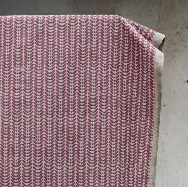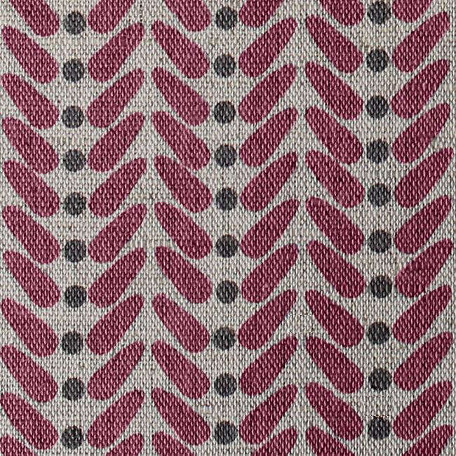 Natural Linen Cotton fabric printed with Red and Grey. Medium weight fabric.