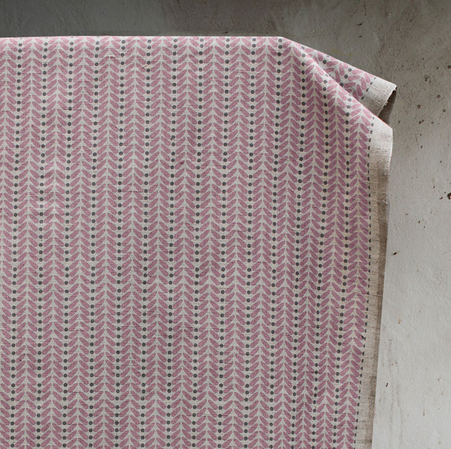 Natural Linen Cotton fabric printed with Dusty Pink and Grey. Medium weight fabric.