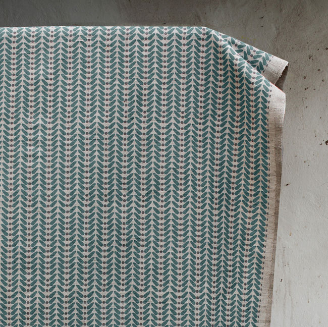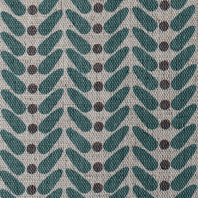 Natural Linen Cotton fabric printed with Green and Grey. Medium weight fabric.