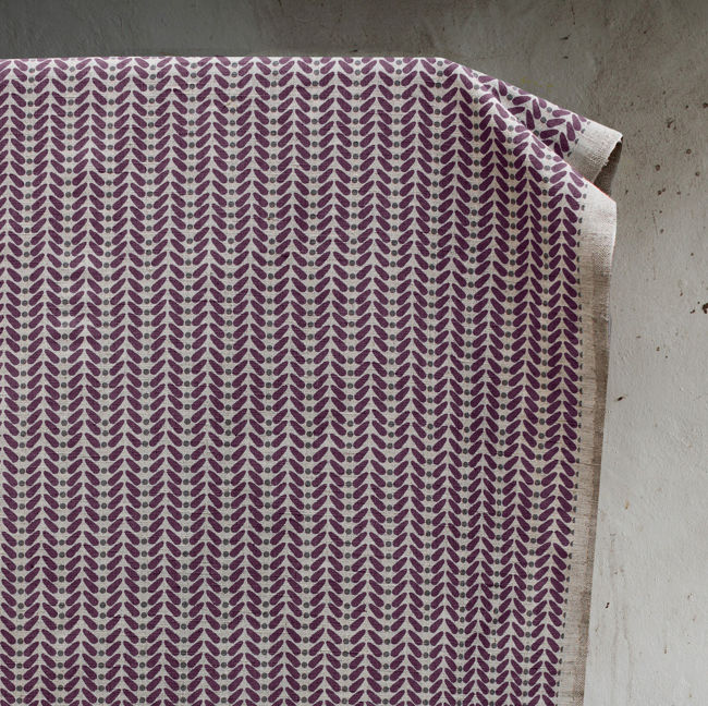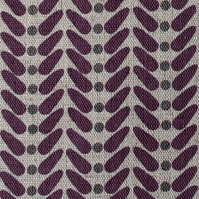 Natural Linen Cotton fabric printed with Purple and Grey. Medium weight fabric.