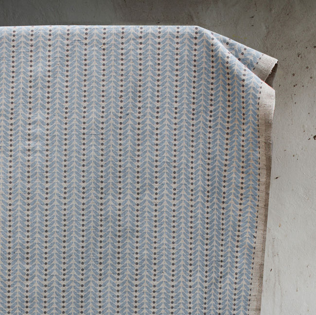 Natural Linen Cotton fabric printed with Light Blue and Grey. Medium weight fabric.