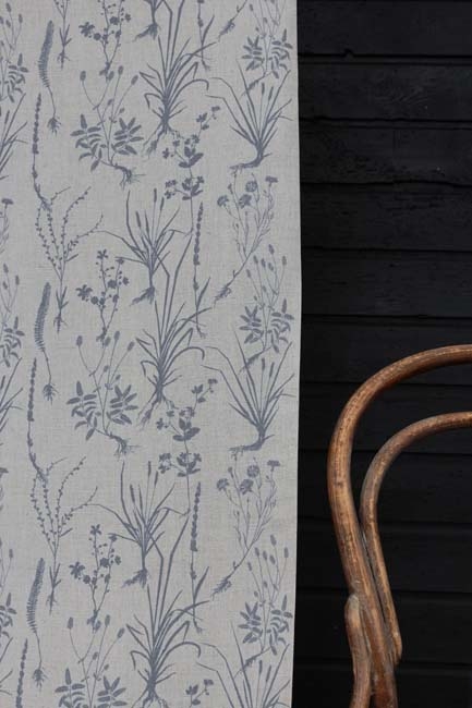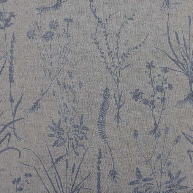 Natural Linen Cotton fabric printed with Grey Medium weight fabric.