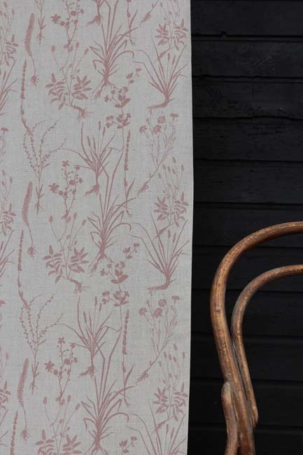 Natural Linen Cotton fabric printed with Pale Pink. Medium weight fabric.