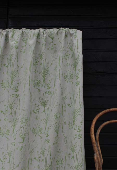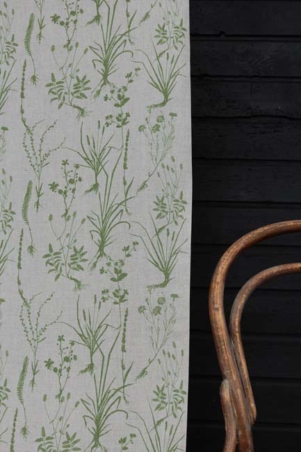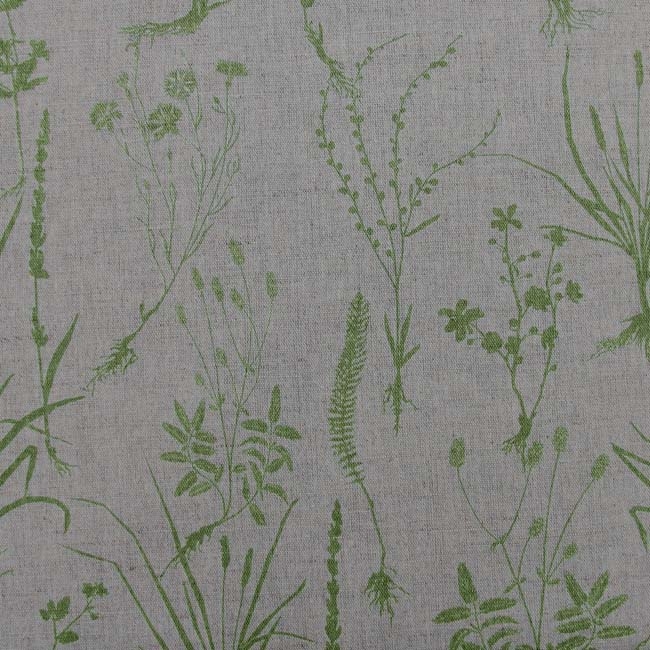 Natural Linen Cotton fabric printed with Green Medium weight fabric.