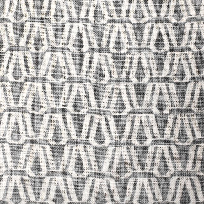 Greige contemporary print on White 100% Linen fabric. Medium weight fabric.