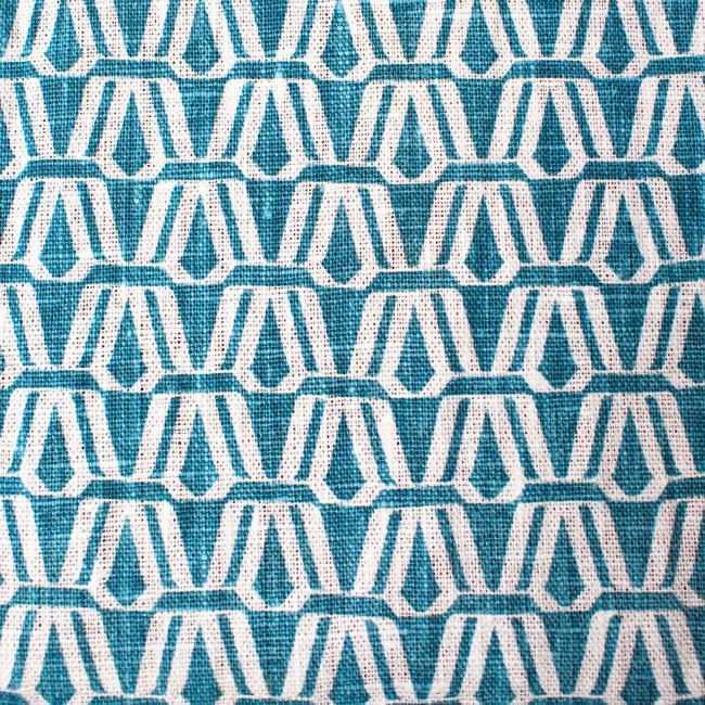 Blue contemporary print on White 100% Linen fabric. Medium weight fabric.