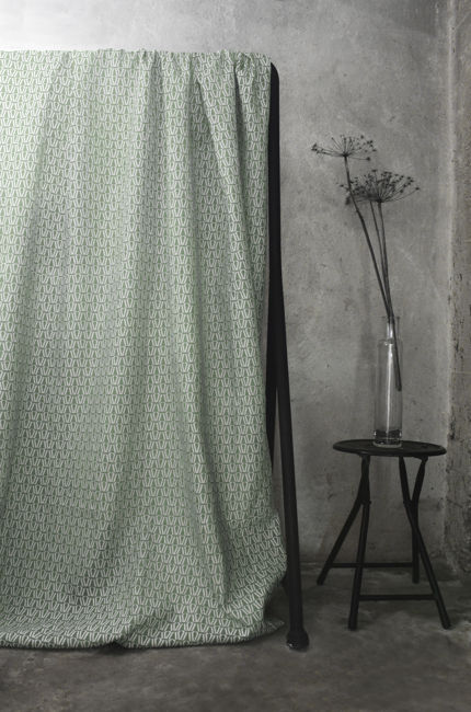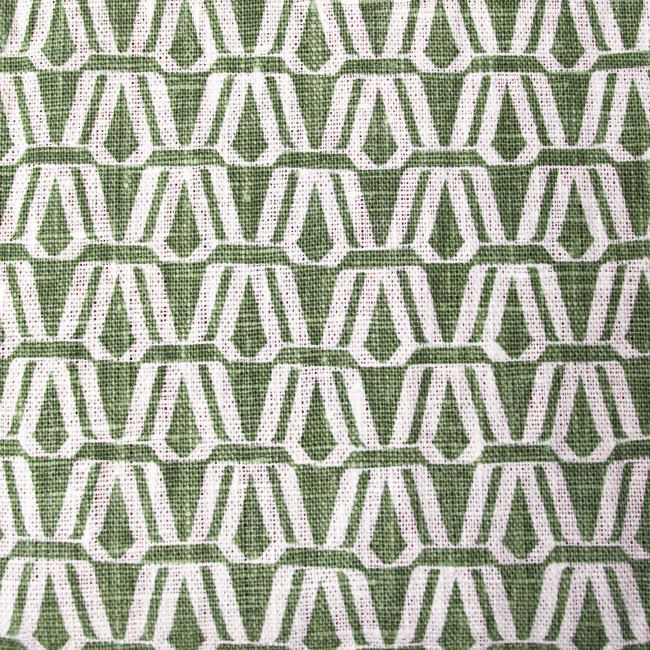 Olive Green contemporary print on White 100% Linen fabric. Medium weight fabric.