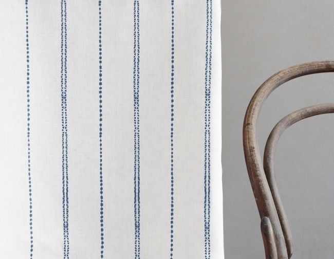 Inga Agate Blue is a white 100% Linen fabric with Blue decorative stripes. Medium weight fabric.
