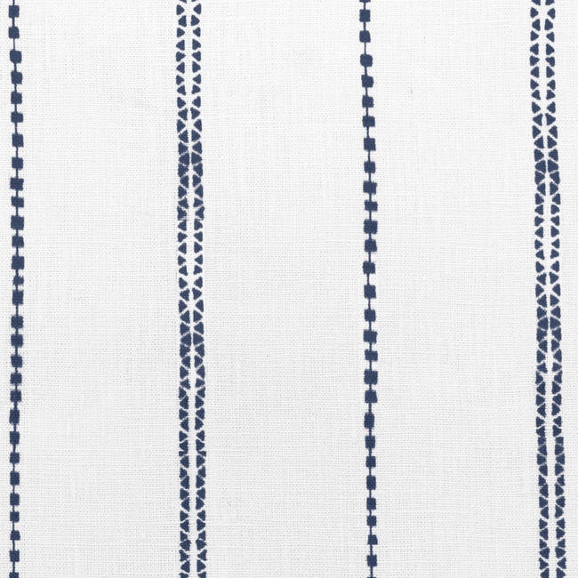 Inga Ink is a white 100% Linen fabric with dark Blue decorative stripes. Medium weight fabric.