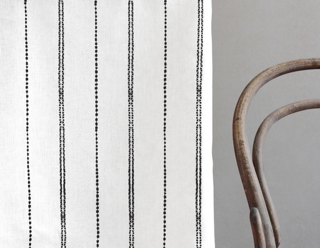 Inga Noir is a white 100% Linen fabric with Black decorative stripes. Medium weight fabric.