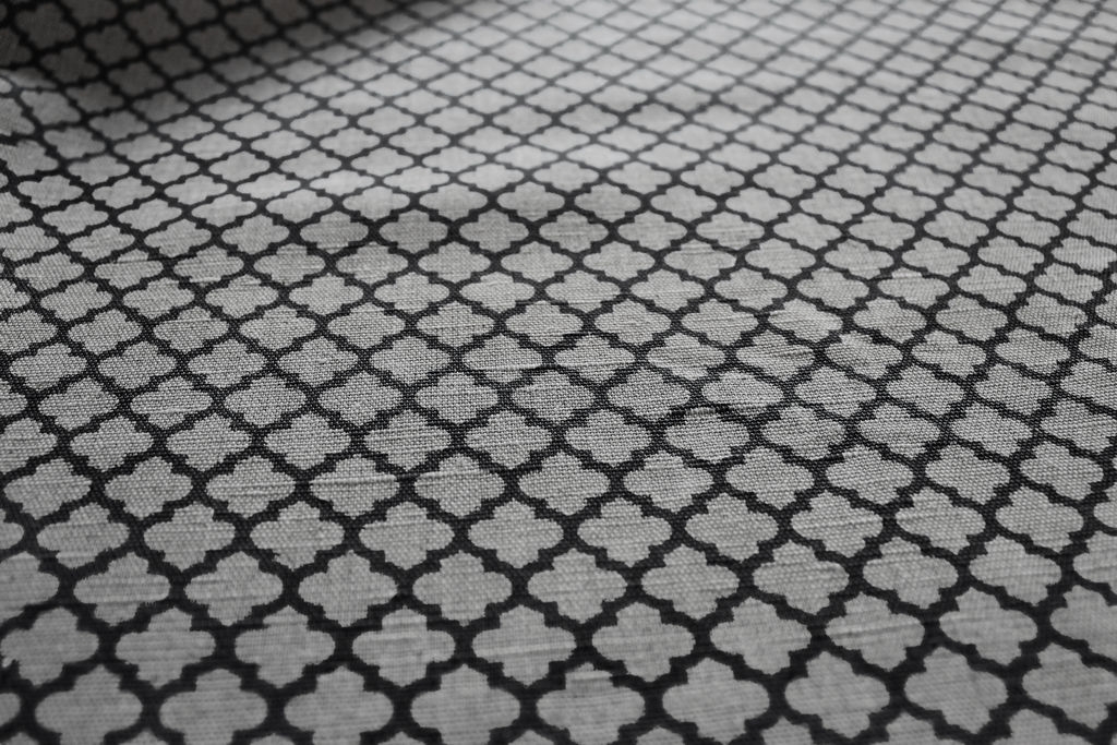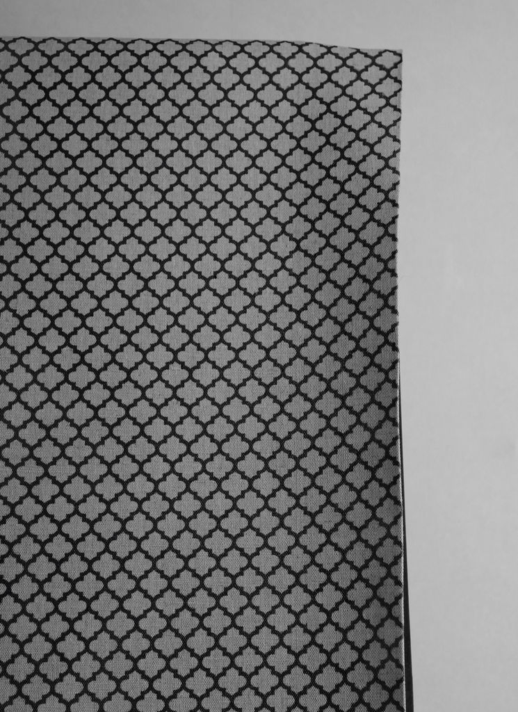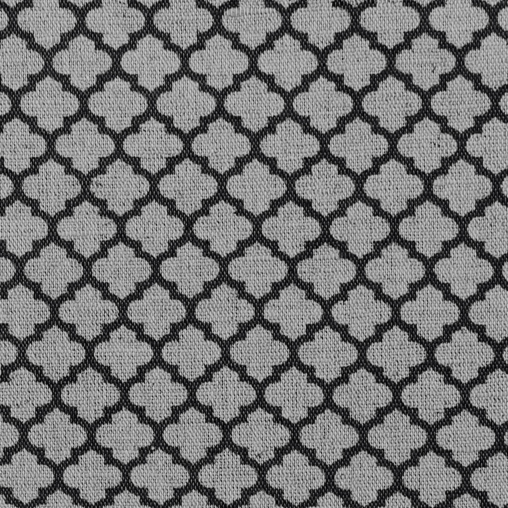 Natural Linen Cotton fabric printed with a black moroccan clover pattern. Medium weight fabric.