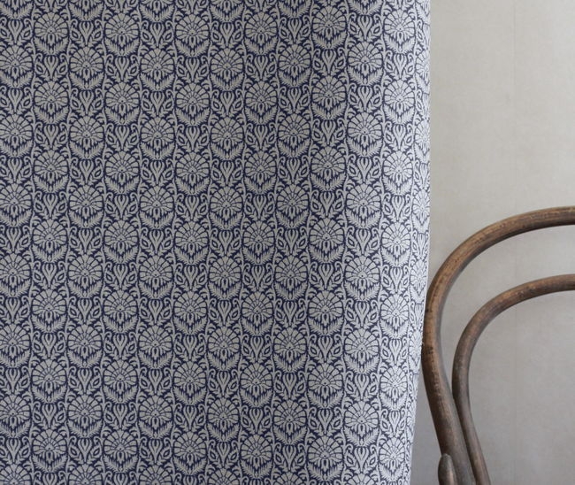 Krista Deep Blue is a Natural Linen Cotton fabric with an abstract dark blue floral pattern. Medium weight fabric.