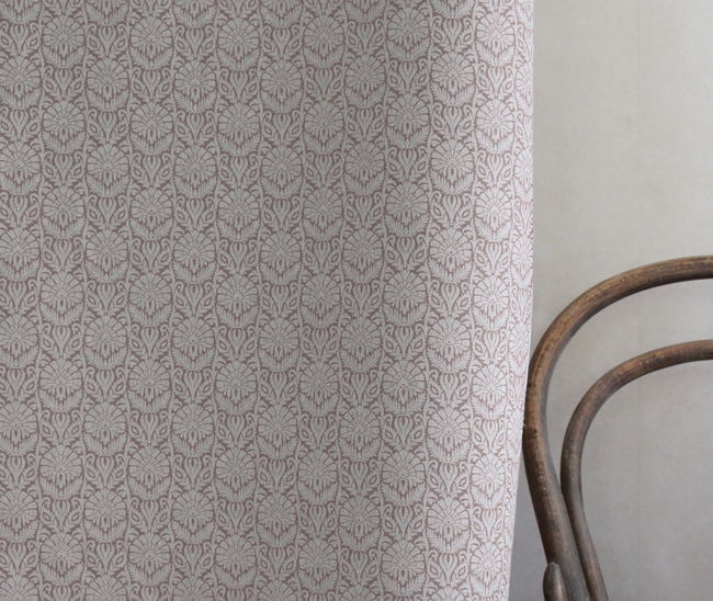 Krista New Blush is a Natural Linen Cotton fabric with an abstract Pink floral pattern. Medium weight fabric.