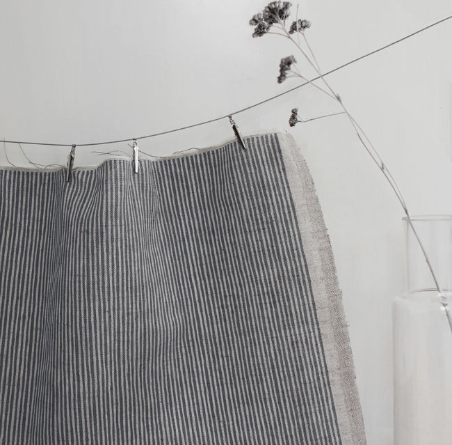 Natural Linen Fabric printed with Grey stripes. Medium weight fabric.