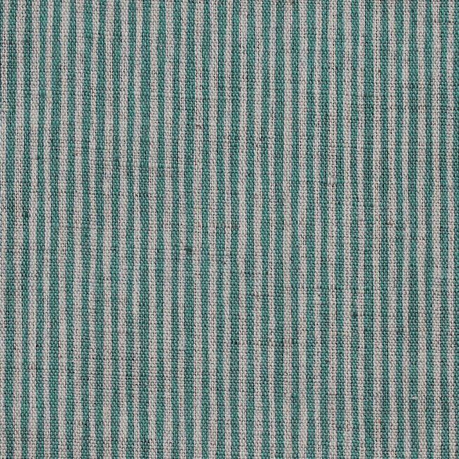 Natural Linen Fabric printed with Green stripes. Medium weight fabric.
