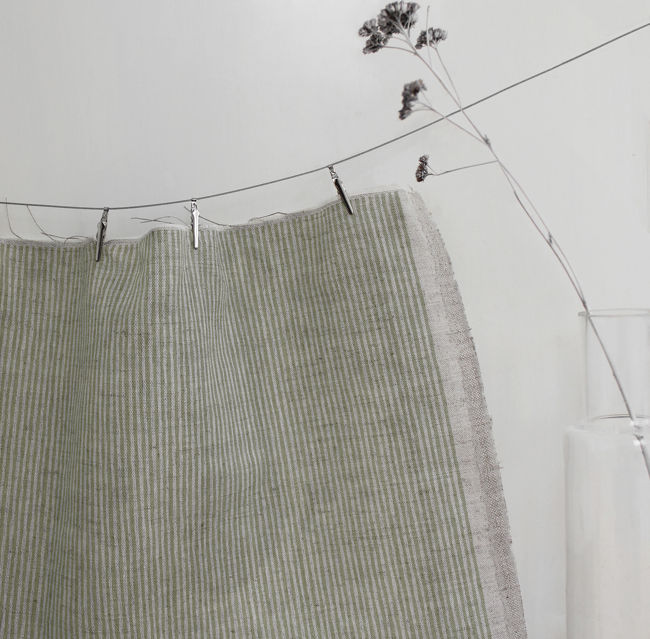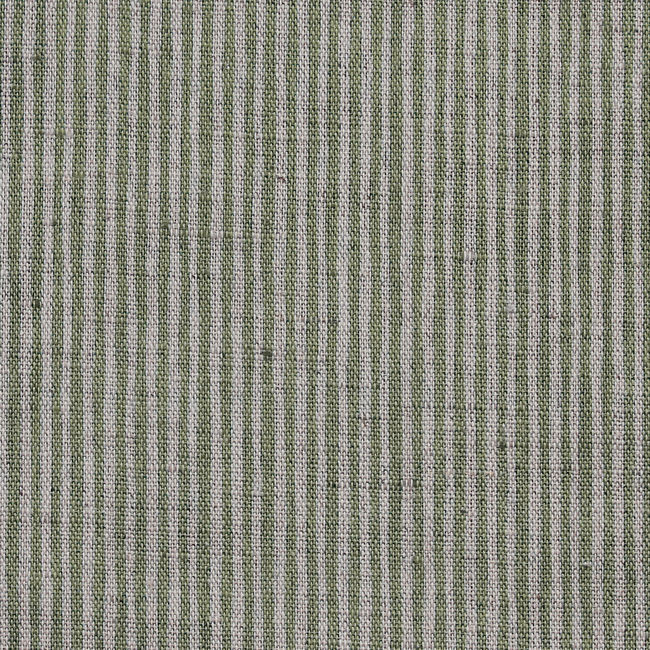 Natural Linen Fabric printed with Olive Green stripes. Medium weight fabric.