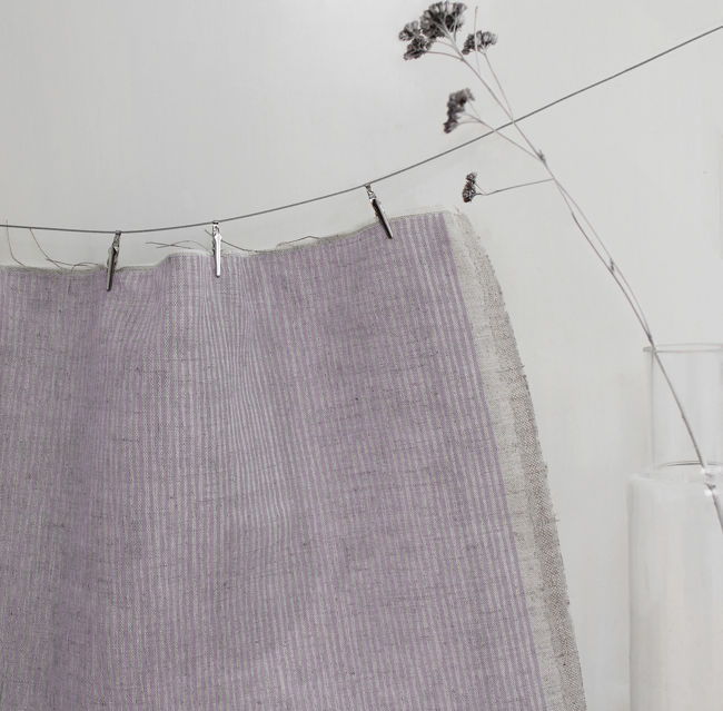 Natural Linen Fabric printed with Pink stripes. Medium weight fabric.