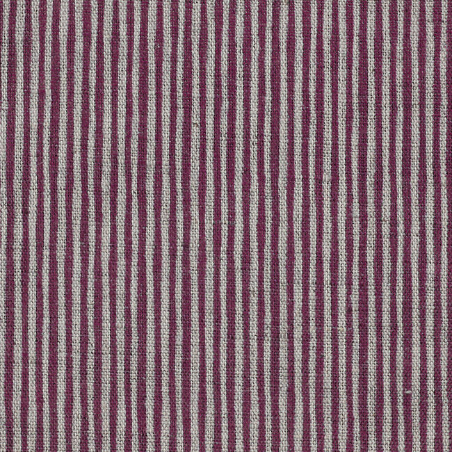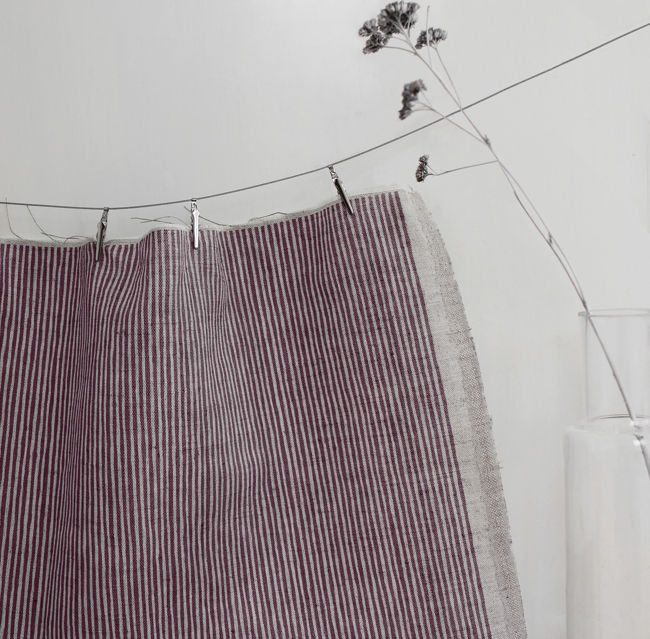 Natural Linen Fabric printed with Wine Red stripes. Medium weight fabric.