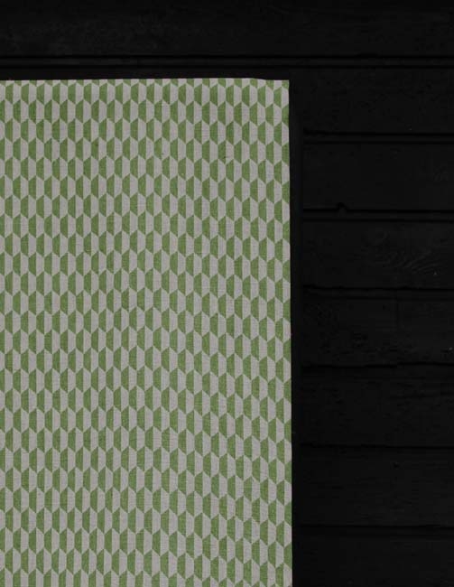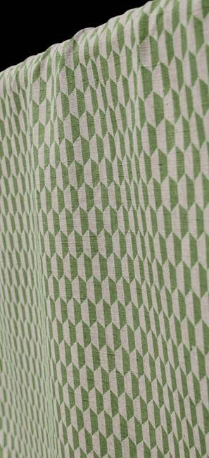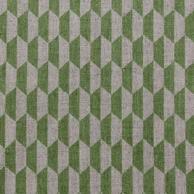 Natural Linen Cotton fabric printed with green. Medium weight fabric.