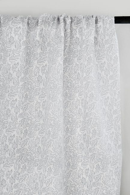 White Linen Fabric printed with Grey botanical print. Medium weight fabric.