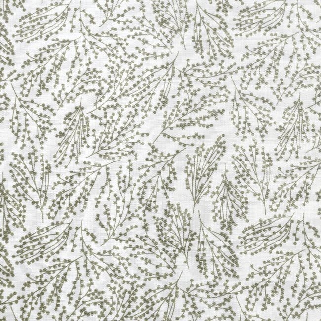 White Linen Fabric printed with Green botanical print. Medium weight fabric.