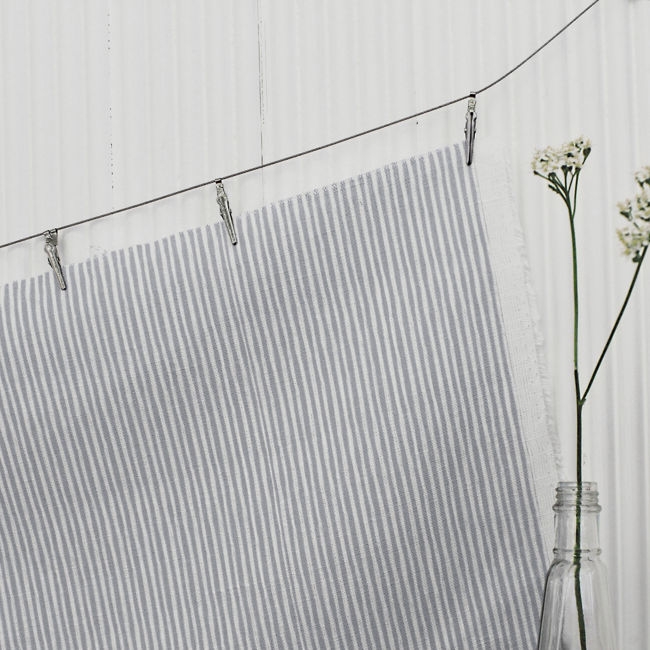 Maisa Greige is a striped white linen fabric with beautiful Grey uneven stripes. Medium weight fabric.
