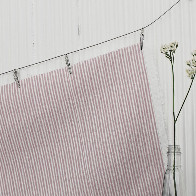 Maisa Peony is a striped white linen fabric with beautiful Pink uneven stripes. Medium weight fabric.