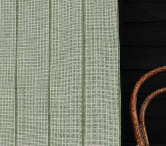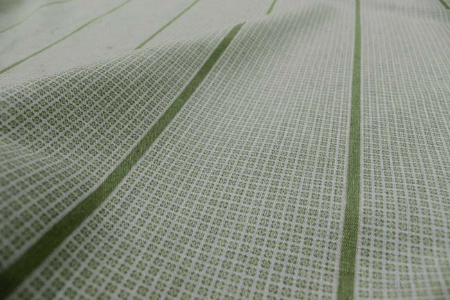 Natural Linen Cotton fabric printed with green. Medium weight fabric.