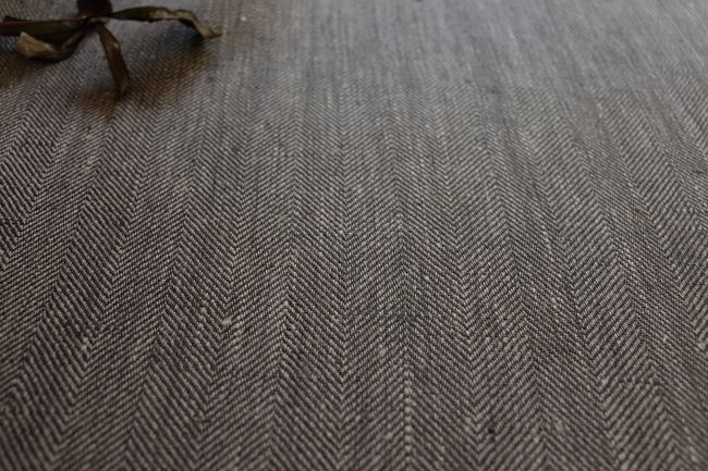 This 100% linen herringbone fabric is woven with two different colour yarns – warm grey and natural linen. The colour is therefore interesting and fabric structure sifts light beautifully, so the colour looks different from different angles. The pattern is subtle and it makes this plain fabric more attractive and gives it more oomph.