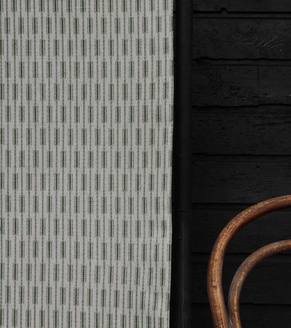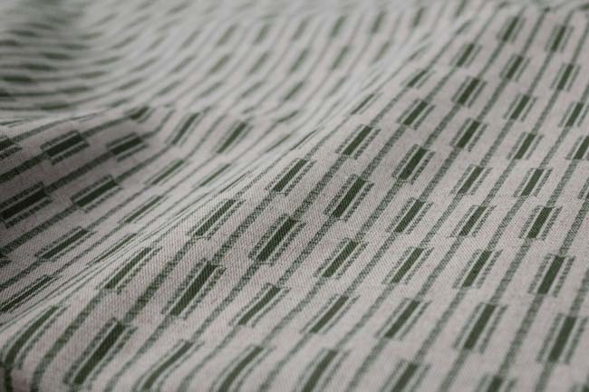 Natural Linen Cotton fabric printed with green. Medium weight fabric.